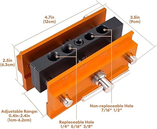 JUJNE Dima autocentrante per fori dritti, larghezza regolabile, set di localizzatore per la lavorazione del legno con 6 boccole guida trapano