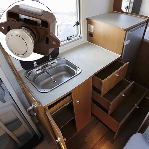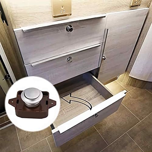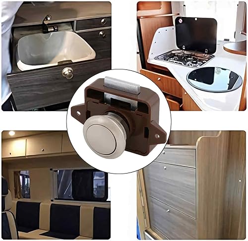 2 Pieces Serratura a Pulsante, Chiusura a Pulsante, Push Lock, Pulsante Per Serratura Armadio, Per Cassettiere Da 15 a 18 mm Di Grosor, Camper, Yacht (Marrone)