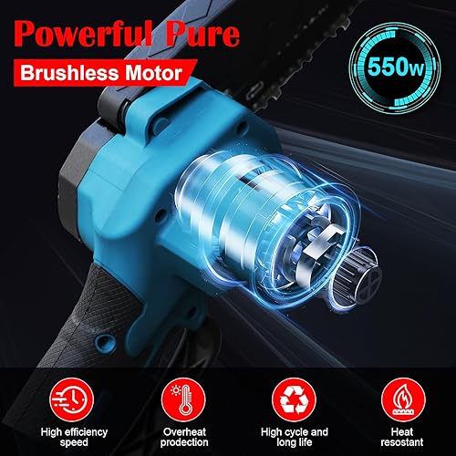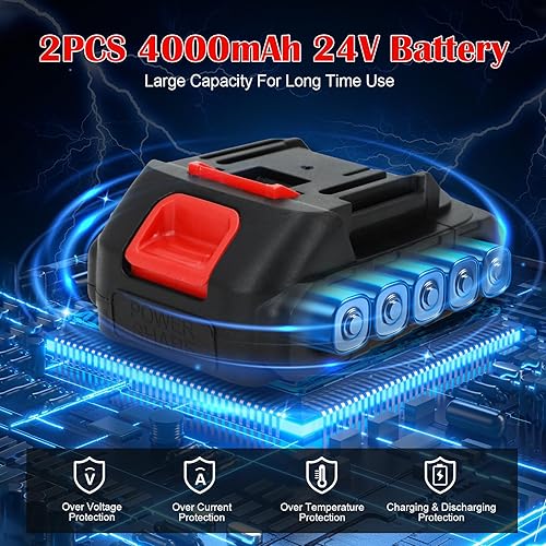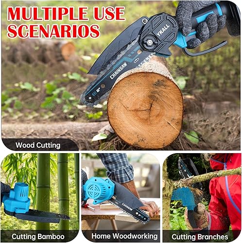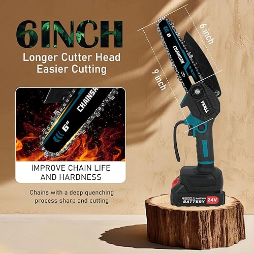 Mini Motosega 24V con Batteria da 8000mAh, Motosega Senza Filo da 6 Pollici con 2 Batterie Potenti e 2 Catene – Blocco di Sicurezza e Motore Ad Alta Potenza per Potatura Alberi e Cura del Giardino