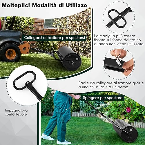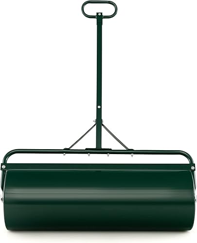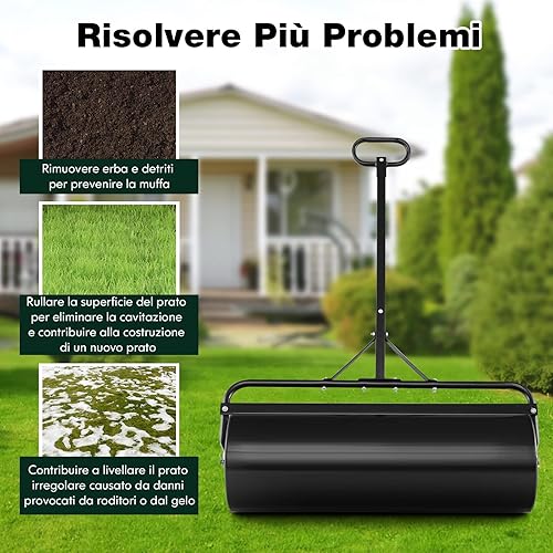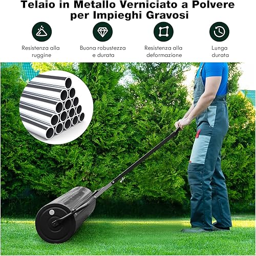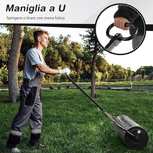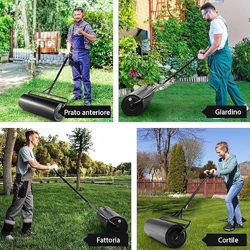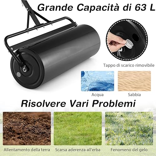 63L Rullo per Prato 90cm, Rullo per Giardino con Manico Regolabile e Protezione dalla Sporcizia, Rullo per Prato Riempibile con Acqua e Sabbia, Rullo per Prato 2 in 1 (Nero)