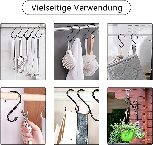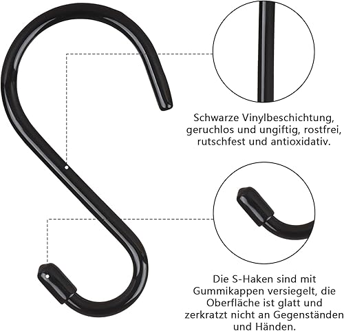 20 Pezzi Ganci a s In Acciaio Inox 15cm / 6inch, Ganci s Nero Da Appendere, Grande Capacità Di Carico Ganci Cucina 30kg, Ganci Cucina Mestoli, Gancio Per Carichi Pesanti Per Appendere Cestini, Pentole