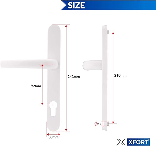 Maniglia per porte esterne in PVC/UPVC, ad esempio di patio o porta d’ingresso, utilizzabile su porte con doppi vetri, colore bianco
