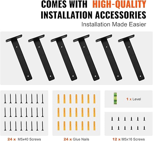 VEVOR Staffa per Mensola, 6 Pezzi, 210 x 100 x 45 mm, Staffe per Mensola Sospesa per Carichi Pesanti Staffa per Mensola a L, Opaca Spessa 5 mm, Staffa in Acciaio Capacità di Carico di 72,6 kg, Nero