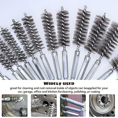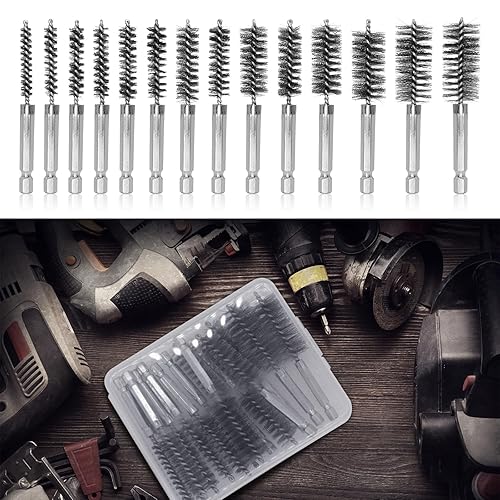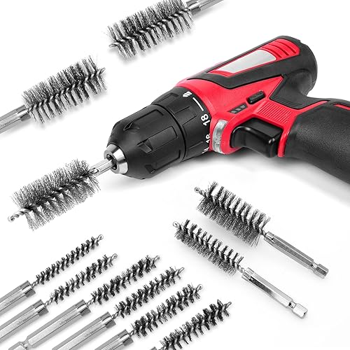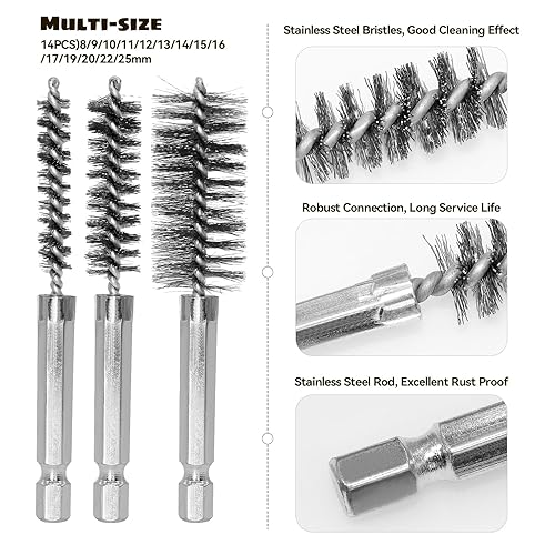 14 spazzole metalliche per trapano, spazzola per caldaia in acciaio inox con asta esagonale 1/4, spazzola cilindrica per lucidatura, levigatura, trapano a percussione, 8-25 mm
