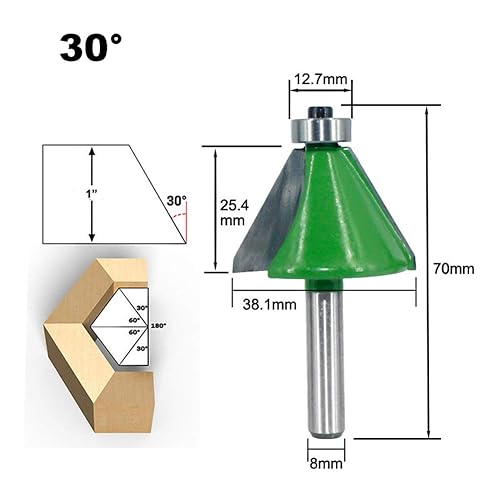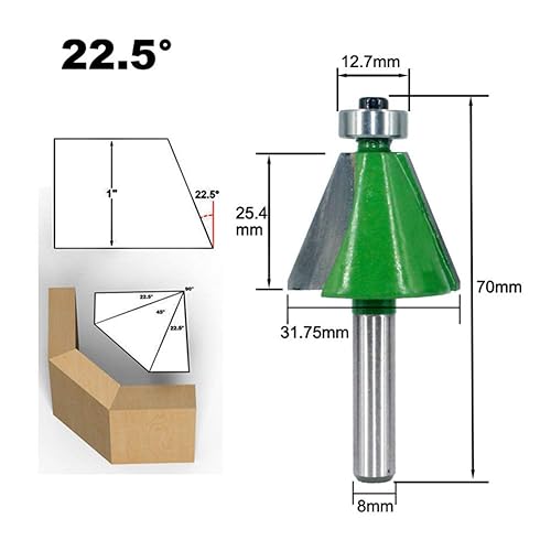 3Pcs 8mm Shank Fresa per smusso e smussatura, 15 Gradi 22.5 Gradi 30 Gradi Chamferandbevel Fresa per Legno Fresa per lavorazione del legno