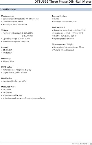 3 fasi, contatore elettrico DTSU666 AC Ampere Volt Potenza Monitor Energy Meter Smartmeter Sensore di potenza per impianto PV DIN 35 mm Contatore di corrente RS485 per Modbus RTU 3×220/380V 5(80)A