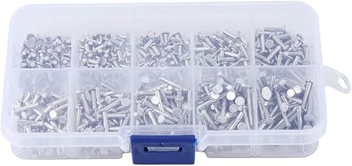 Rivetto Solido a Testa Piatta, Rivetto Solido a Testa Svasata Piatta in Alluminio da 500 Pezzi con Scatola per Rivetti M2 3 Mm-18 Mm di Lunghezza, Rivetti Solidi