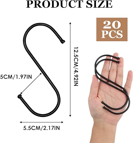 Ganci a S SRLWMYI 20 Pezzi Ganci Forma S pesanti Gancio Multifunzione Anti Ruggine in Alluminio S Ganci Appendiabiti per Cucina Camera da Letto Bagno Giardino Ufficio, Nero Grandi