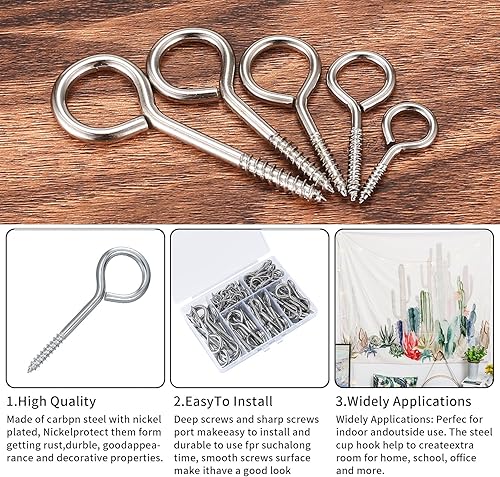 105 Pz Ganci Avvitabili, Occhielli a Vite per Legno, Ganci a Vite con Occhiello, Piccole Viti a occhiello Filettatura a Metallo per Soffitto Parete, Impiccagione, Fai da te Artigianato