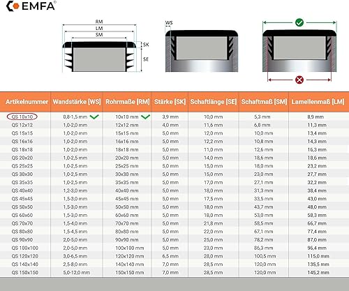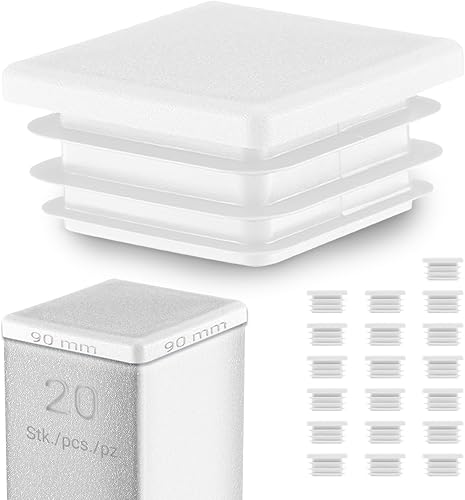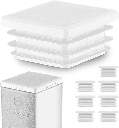 EMFA Tappo Terminale per Tubo Quadrato 30x30 mm Bianco – Tappi in Plastica con Lamelle 3x3 cm – Copritubo di Chiusura – 8 Pezzi