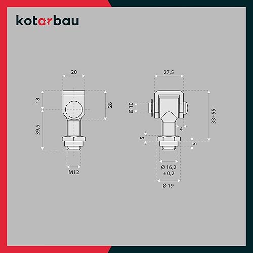KOTARBAU® Set di 2 cinghie regolabili per porte M12, cerniera di saldatura, in acciaio galvanizzato, zincato, cerniere per porta, colore argento, cerniera regolabile, cerniere per porta