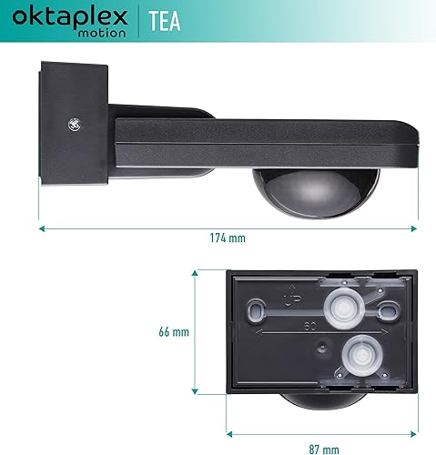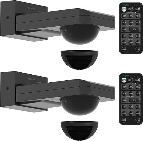 Oktaplex Tea Rilevatore di movimento esterno antracite 360 gradi con telecomando sensore a infrarossi 9 m portata 230 V IP65 per soffitto e parete