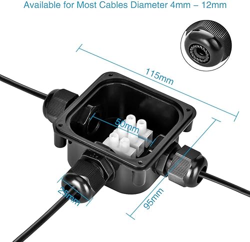 Tofree - Scatola di giunzione impermeabile, confezione da 5 pezzi, protezione IP68, 230 V, colore: Nero