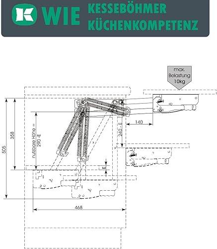 SO-TECH® Meccanismo di movimento parallelo I Portata 10 Kg per Larghezza Mobile 410-570 mm