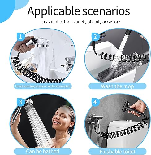 Tubo flessibile per doccia in schiuma con molla, telescopico, a spirale flessibile per doccia, 3 m, nero, ideale per doccia, WC e bidet