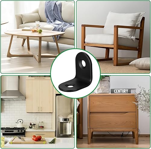 20 Staffe Angolari a Forma di L, Staffe ad Angolo Retto, Staffe Angolari Piccole in Acciaio Inossidabile Nero Staffe di Collegamento per Mobili in Legno, Armadi, Sedie, Tavoli - 0,79x0,79 pollici