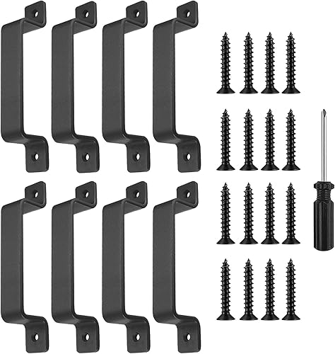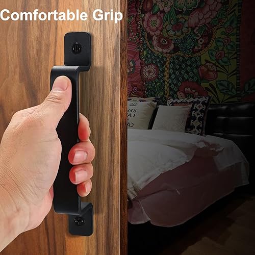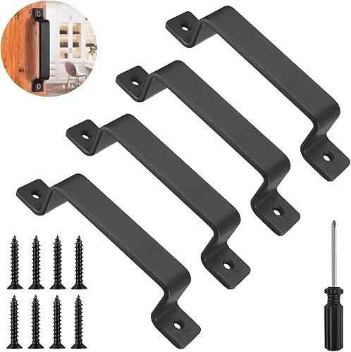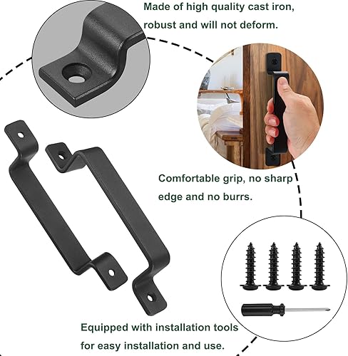 2 Pezzi Maniglia Porta Scorrevole Nero Maniglie per Porte in Ghisa Robuste dal Design Vintage Maniglie per Mobili con Viti e Cacciavite per Porte di Capannoni Garage Armadi Credenza