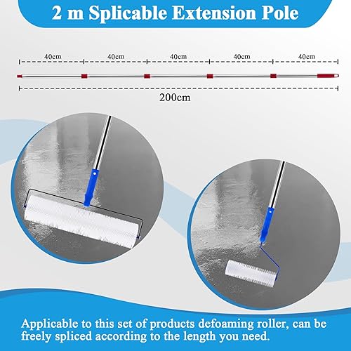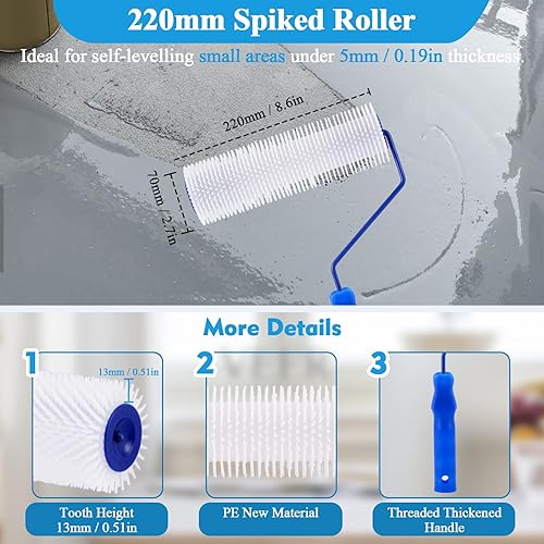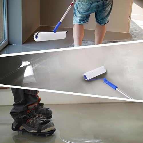 MABAOHENG Kit di Strumenti Autolivellanti per Cemento con 2m Rimovibile Manico Esteso, 28mm Rullo per Rimuovere le bolle epossidico per pavimenti, 300mm scarpe a chiodo, Set di rulli di sfiato 460mm