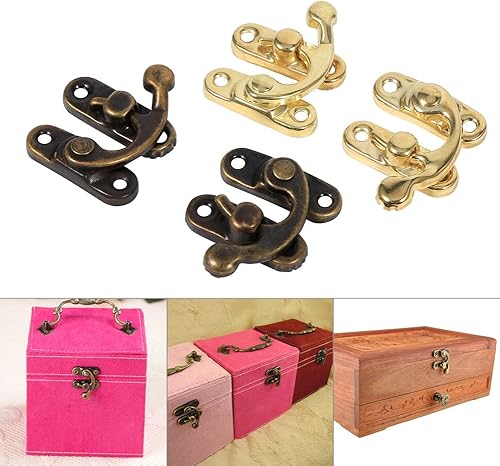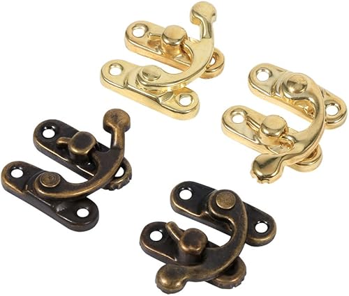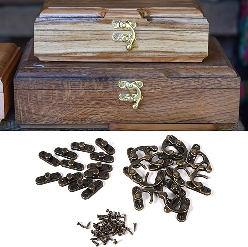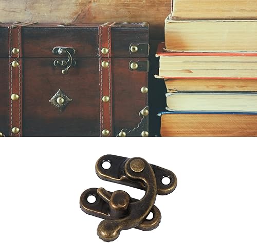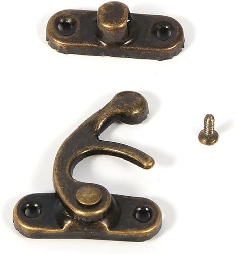 Serratura Antica, 12X Antique Sinistra/Destra Gancio a Scatto Hasp Chiusura Corno Cassetto Cerniera Armadietto con Viti Decorativo Gioielli Vino Scatola di Legno(right-Bronze)