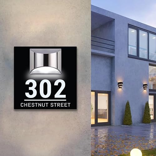 Targa moderna per porta a energia solare, con indirizzo, illuminata a LED, in acrilico, regalo di inaugurazione della casa (indirizzo solare A)