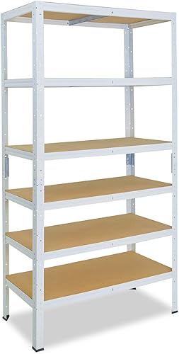 180x100x40cm HOME Scaffale metallo per carichi pesanti bianco con 6 ripiani con 145kg capacità di carico/Scaffali in metallo per garage come scaffali per ripostiglio o officina
