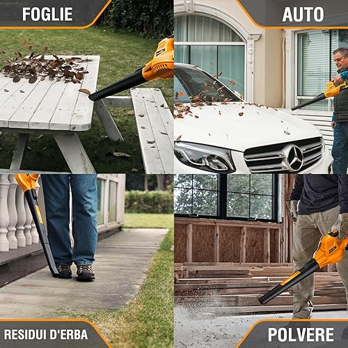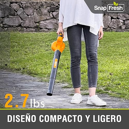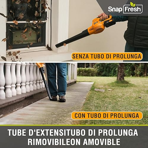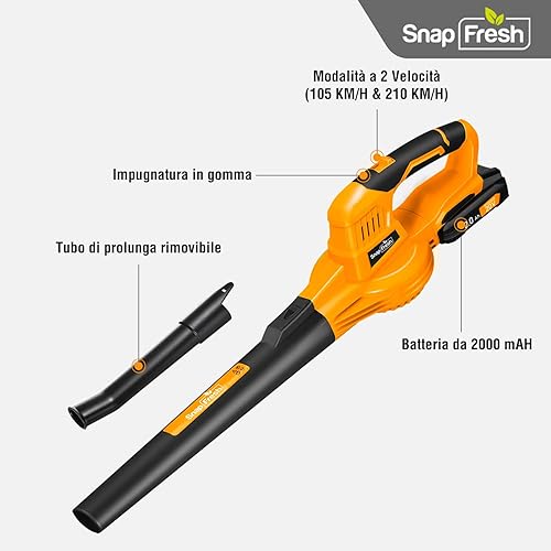 SnapFresh Soffiatore Elettrico Soffiatore a Batteria 20V Soffiatore per Foglie Parkside con Batteria e Caricabatterie 210 km/h 240m³/h / 2 Modalità /1,2kg per Foglie/Prato/Auto/Polvere (Arancione)