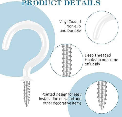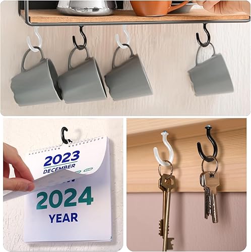 78 ganci neri per appendere al soffitto, ganci a vite, ganci da soffitto in metallo, ganci da parete multiuso rivestiti in vinile, per appendere piante, tazze, utensili (nero)