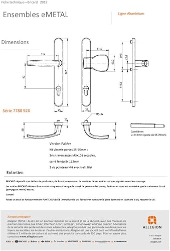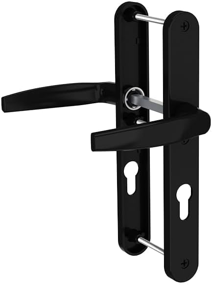 788923. Set di maniglie su piastra Emetal. Cavalletto e cavalletto per porta d'ingresso (per cilindro europeo). Laccato Nero.