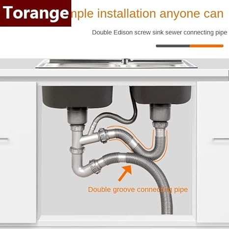 Aurorad Cucina lavello a Doppia Testa sotto Il lavandino del Piatto a Tubo dell'Acqua Dolcola for Scarico a Doppia Vite Collegamento del Tubo Flessibile for Estensione (Size : 48-40CM)
