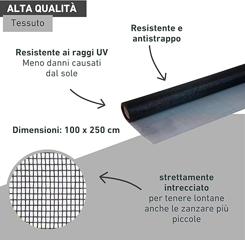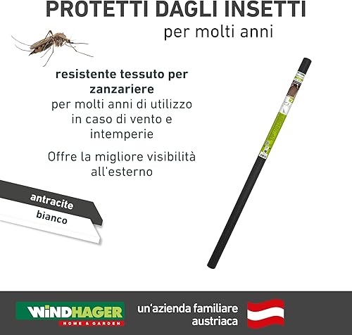 Windhager Zanzariera in fibra di vetro di alta qualità, saldata a rete, resistente ai raggi UV, bianca, 100 x 250 cm, 03434