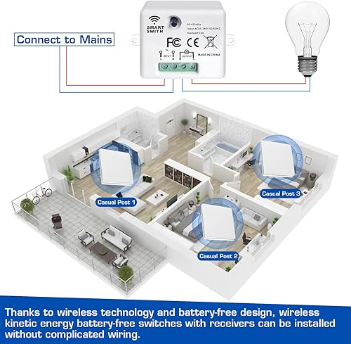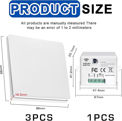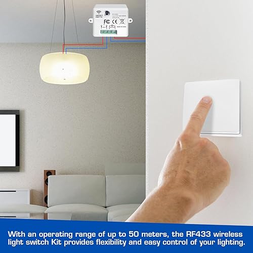RF433 Interruttore Luce Senza Fili: Interruttore Luci Senza Fili con Ricevitore, Interruttore Senza Fili a Parete, Kit a 3 vie, Portata Fino a 50m per Lampade e Impianti Elettronici
