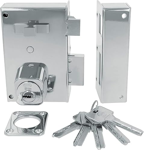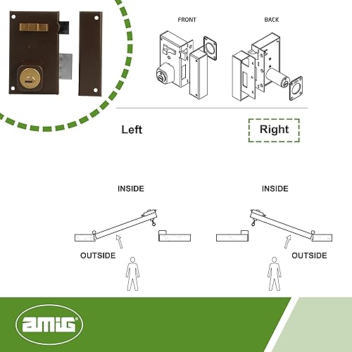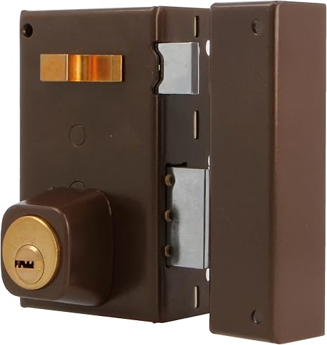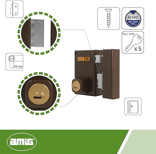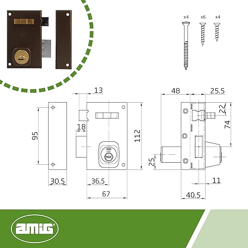Amig - Serratura da sovrapposizione a destra con leva di chiusura, linguetta e maniglia per porte in legno mod. 75 67 x 112 mm Cilindro rotondo di sicurezza Acciaio Marrone