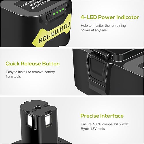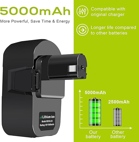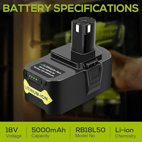 ASUNCELL Batteria agli ioni di litio da 18 V 5,0 Ah per Ryobi One +, batteria agli ioni di litio per Ryobi BPL-1815 BPL-1820G BPL1820 BPL18151 P102 P103 P104 P105 P106 P107 P108