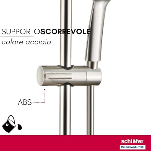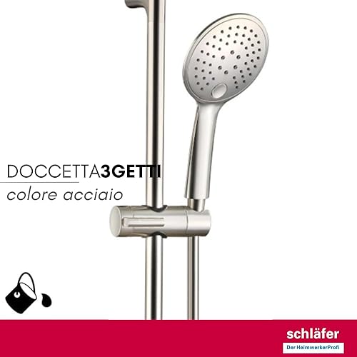 1317410 | Saliscendi Doccia Euphoria1 con Soffione, Interasse Fisso 75cm Asta Doccia 76,5cm, Doccetta a 3 funzioni con Sistema Anticalcare, Flessibile Doccia in Pvc, Colore Acciaio