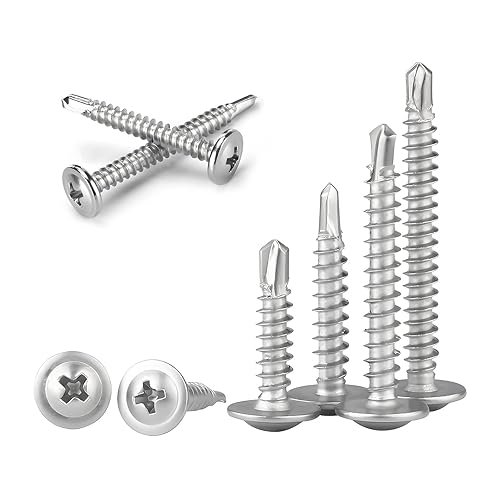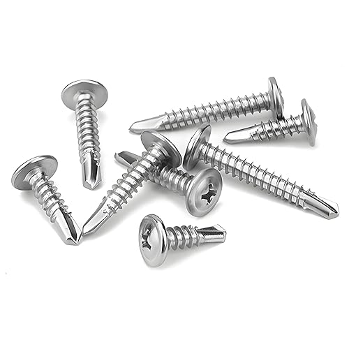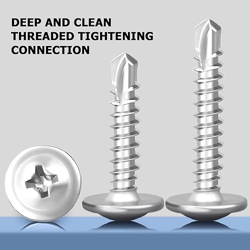 100 Pcs Viti Autofilettanti per Metallo Testa Tonda Piatta 410, in Acciaio Inox, M4,2 x 25 mm a Croce con Cacciavite per Acciaio, Lamiera