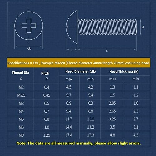 Viti a Macchina a Croce Acciaio Inox Viti a Testa Tonda Testa di Fungo Bulloni M5x20mm (20 Pezzi)