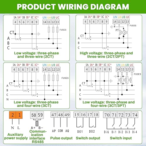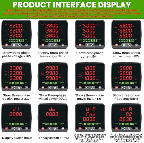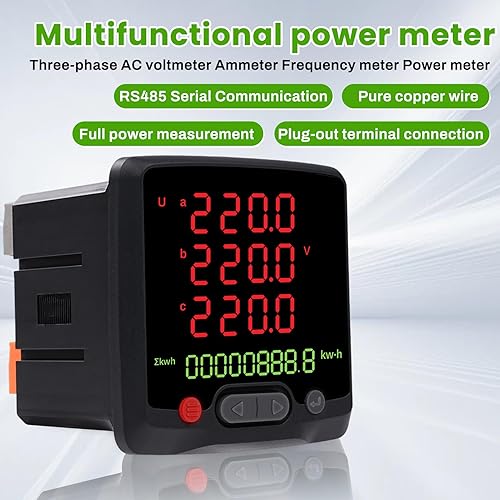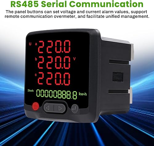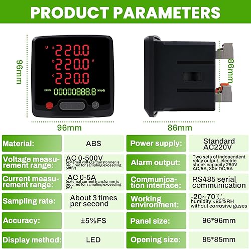 Contatore energia elettrica trifase misuratore consumo elettrico AC 0-500V 0-5A può misurare la tensione corrente di 8 tipi di valori regolazione di tensione di allarme RS485 seriale (96x96mm)