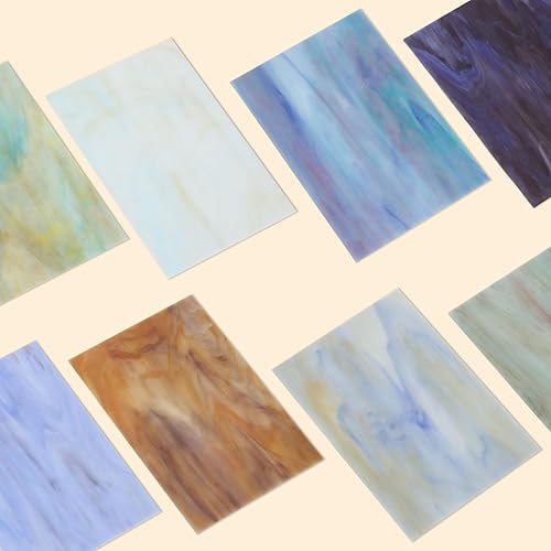 QUARKZMAN 8 Fogli Lastre Vetro Colorato, 100x150mm PMosaico di Vetro Varietà Piastrelle per Progetti Fai Da Te Decorazione Casa, Serie Blu e Verde