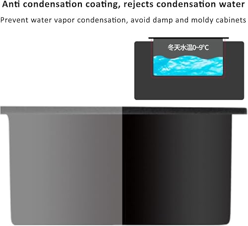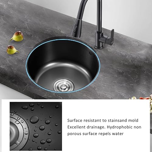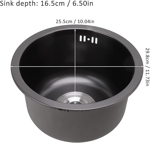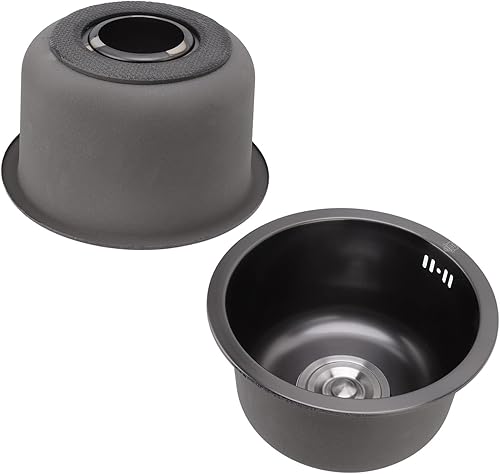 Lavello da Cucina Rotondo, Vasca Singola, in Acciaio Inox + Plastica, Sottopiano, Barra Tonda, Lavabo Singolo, Bagno, con Accessori di Scarico, Diametro