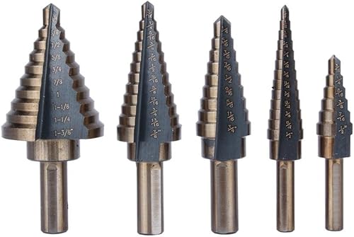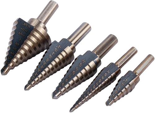 Fydun Set di punte da trapano a 5 pezzi in cobalto di grandi dimensioni in cobalto HSS Step in titanio con punta per trapano + custodia