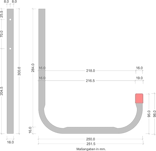 Gedotec Gancio da parete per officina | Gancio per attrezzi da garage | Scala | Gancio grande | 250 x 300 mm | Portata 30 kg | Ganci per attrezzi da avvitare | 6 Pezzi