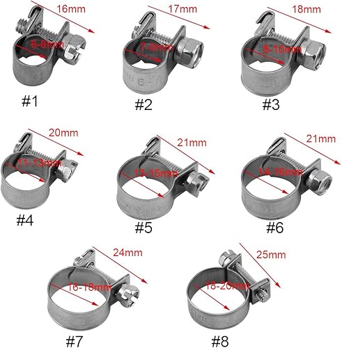 Fascette Stringitubo in Acciaio Inossidabile, 10 Pezzi Fascette Stringitubo Piccole Fascette Stringitubo da 6 Mm-20 Mm Clip per Tubo Carburante con Bullone a T, per Tubo Benzina