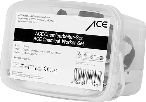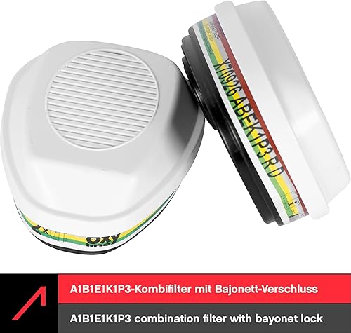 ACE Set di protezione respiratoria contro le sostanze chimiche - Maschera con doppio filtro A1B1E1K1P3 - Semimaschera contro polveri, gas e vapori