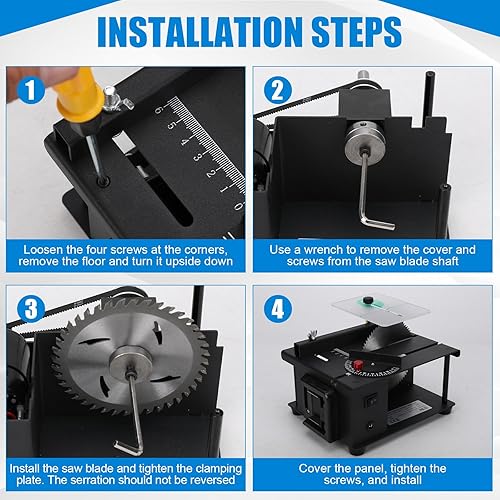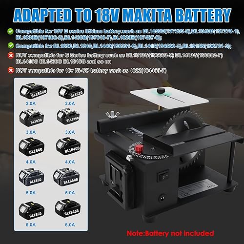 Mini Sega da Tavolo per Makita 18V, Multifunzionale e Portatile Sega da Tavolo Miniaturizzata DIY, 0~35mm Altezza di Taglio Regolabile, 4 Lame, per Artigianato e Lavorazione