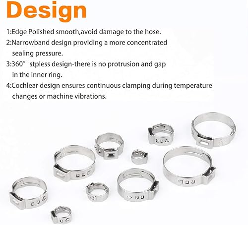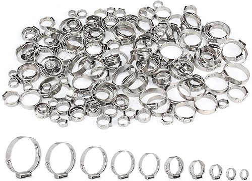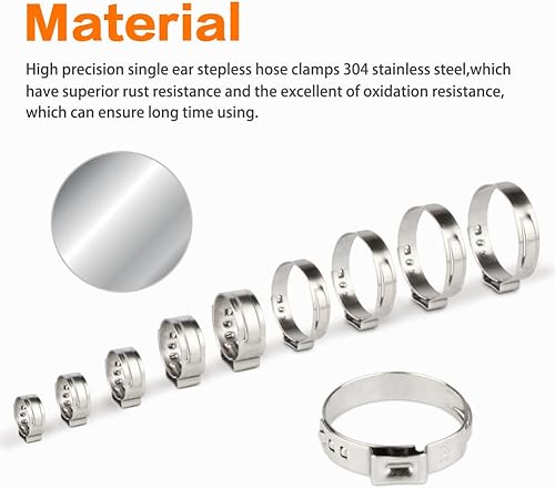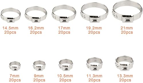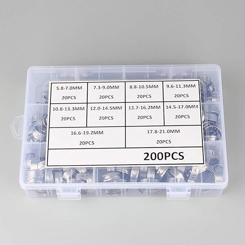 Outigu 200 fascette stringitubo singolo in acciaio inox 304: kit assortito con 10 misure (7-21 mm) per tubi dell'acqua, idraulici e uso automobilistico