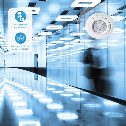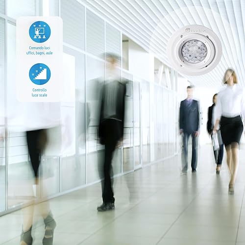 Finder Rilevatore di Movimento per Interno Tipo 18.31. Montaggio a controsoffitto/cartongesso. Dotato di 1 NO 10. Programmazione standard. Con contatto di uscita a potenziale di rete