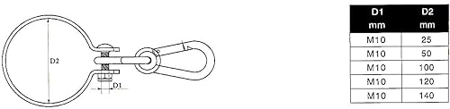 Ganci per polsini con moschettone zincato, ganci per altalena per tubi o legni rotondi, set da 2 (50 mm)