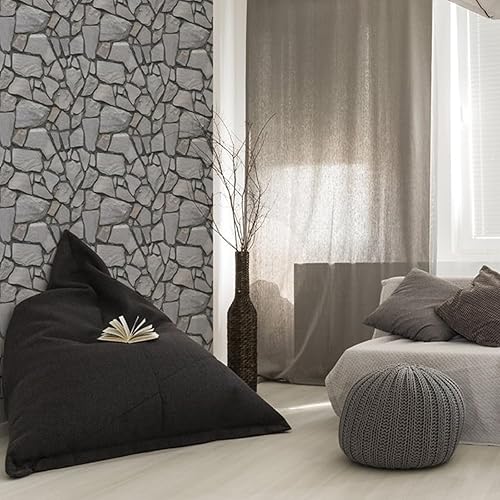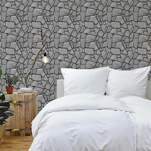 Pannelli da parete 3D, autoadesivi, effetto pietra, 10 pezzi, carta da parati effetto pietra, 3D, autoadesiva, per soggiorno, camera da letto, decorazione da parete, 30 x 30 cm, colore grigio