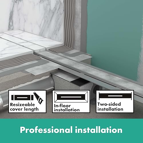 hansgrohe RainDrain Rock - set di canalina doccia piastrellabile e accorciabile, canale di drenaggio doccia 800 mm, scarico a pavimento