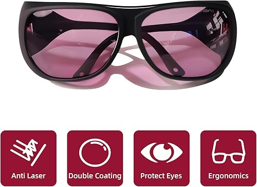 Occhiali di Protezione Laser OD4+ 190-380nm & 750-860nm,808nm, 830nm, Protezione per Gli Occhi con Occhiali Laser a Luce UV e Vicino Infrarosso con Custodia.
